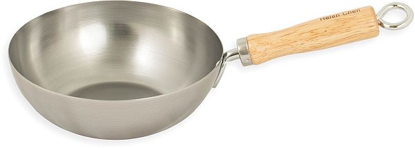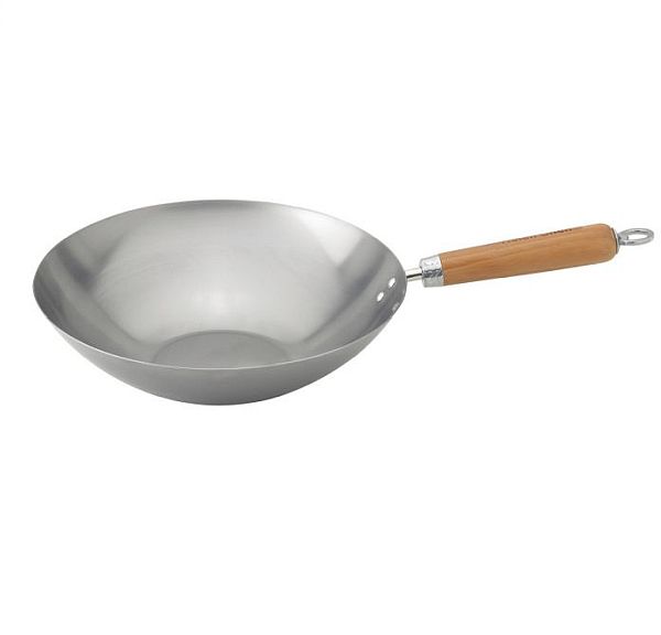 Helen's Asian Kitchen Carbon Steel Wok can be used to stir fry, stew, sauté, deep fry, braise, boil and so much more. Carbon steel distributes heat quickly so foods cook evenly. The cooking surface will develop a natural patina over time for non-stick cooking performance. The flat bottom design sits securely on any stovetop including gas, electric, and induction stoves. Eco-friendly: Carbon steel is recyclable, and bamboo is 100% sustainable.